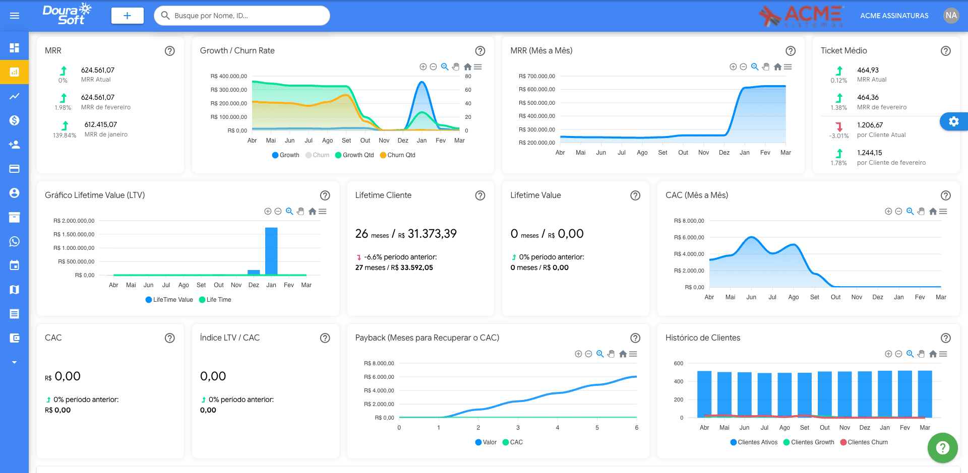 Porque a maioria dos sistemas de cobrança foi feita pra grandes empresas e adaptada pra baixo. O DouraSoft Assinaturas foi construído pra empresas como a sua: cobrança recorrente, régua automática, múltiplos canais de pagamento, NF integrada. Tudo pronto, sem customização de 6 meses. Em 2 dias você já está cobrando no automático.